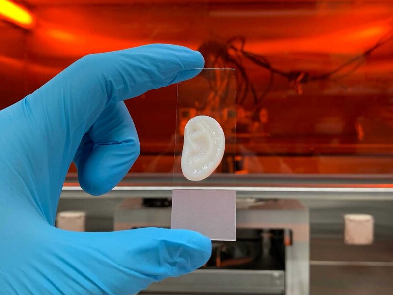 Als Ausgangsmaterial nutzte das Team um Philipp Fisch Zellen aus kleinen Knorpelresten, die nach Operationen zur Korrektur von Ohrformen übrigblieben. Diese wurden in Zellkulturen so angezüchtet, dass ausreichende Mengen für eine Basissubstanz vorhanden waren. Die grosse Herausforderung hierbei ist, Zellen vom Kollagentyp II zu generieren, die für Ohrknorpel typisch sind. Nebst dem speziellen Kollagen muss auch noch das Protein Elastin erzeugt werden. Dabei handelt es sich um ein Protein, das dem Ohr seine Biegsamkeit verleiht. Ein Gemisch aus Elastin, Kollagen II und zuckerartigen Glykosaminoglykanen wurde in sogenannter Biotinte eingebettet. Ein daraus mit einem 3D-Drucker in Ohrform erstelltes Gelatinestück ist dann über mehrere Wochen in einem Inkubator gereift. «Wir haben die Zellvermehrung optimiert, die Materialeigenschaften angepasst, die Zelldichte erhöht und die Reifungsumgebung besser kontrolliert», wird Philipp Fisch in der Mitteilung zitiert. Die Ohrkonstrukte wurden subkutan in Ratten implantiert, das Material zeigte sich für eine Zeit von sechs Wochen stabil.