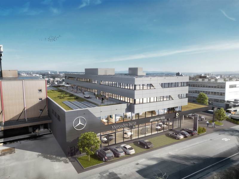 Ein Grossteil der Flächen ist bereits vergeben. Die LUEG AG Schweiz, offizieller Vertriebs- und Servicepartner von Mercedes-Benz, wird das Erdgeschoss, das erste Obergeschoss sowie Teile der Lager- und Einstellflächen beziehen.